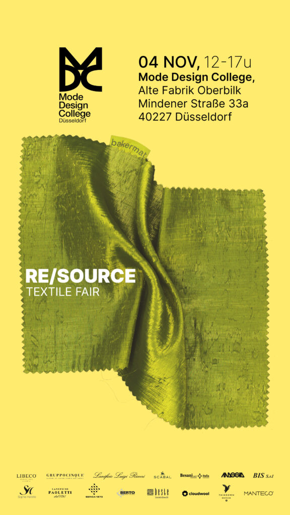Am 04.11. von 12:00 bis 17:00 Uhr öffnet das Mode Design College Düsseldorf seine Türen für die nächste Ausgabe von RE/SOURCE – die Veranstaltung, bei der Modebegeisterte, Studierende und Designer:innen die neuesten Stoffkollektionen unserer renommierten Textilpartner entdecken können.